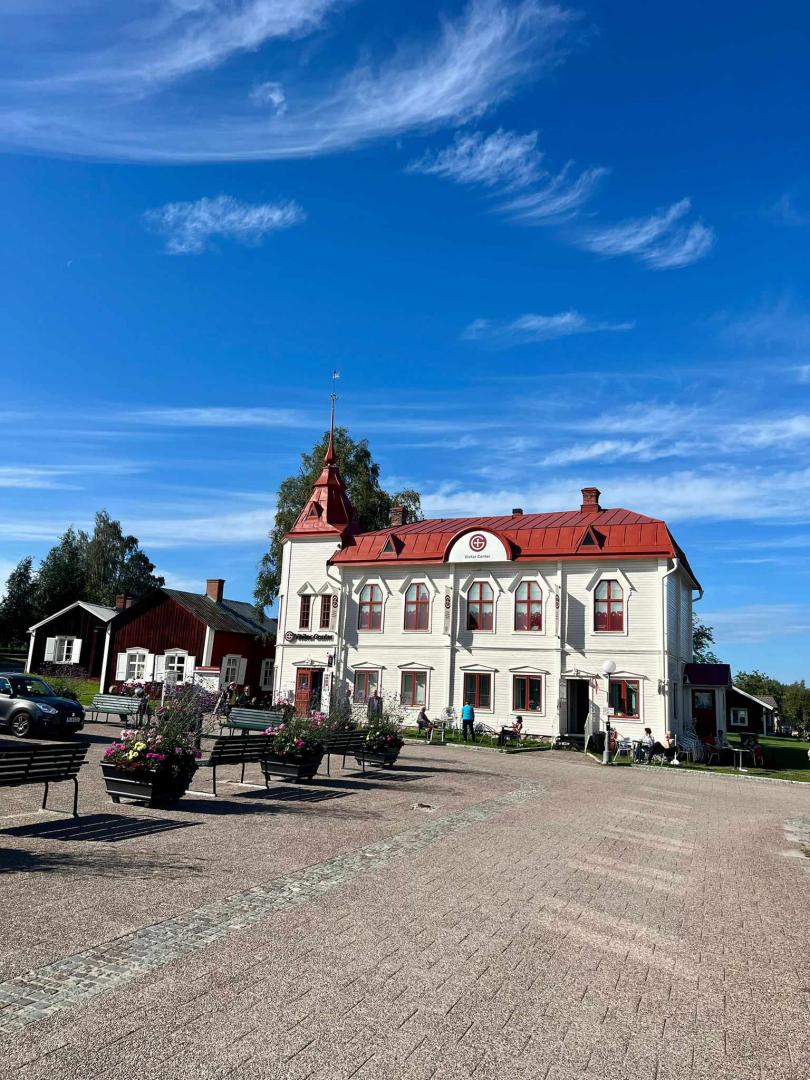 Ennen ajomatkaa Luulajaan pysähdyimme Haaparannan toriaukiolla. Tunnetuin rakennus torilla on pitkän historian omaava, vuonna 1900 avattu Haaparannan kaupunginhotelli, joka on sekä Suomen että Ruotsin Lapin vanhin hotelli. Kulman takaa löytyi pieni idyllinen konditoria, johon moni ehti aamupäivän fika-hetkelle tai nouti bussiin Haaparannan omaa nimikkopullaa maisteluun.